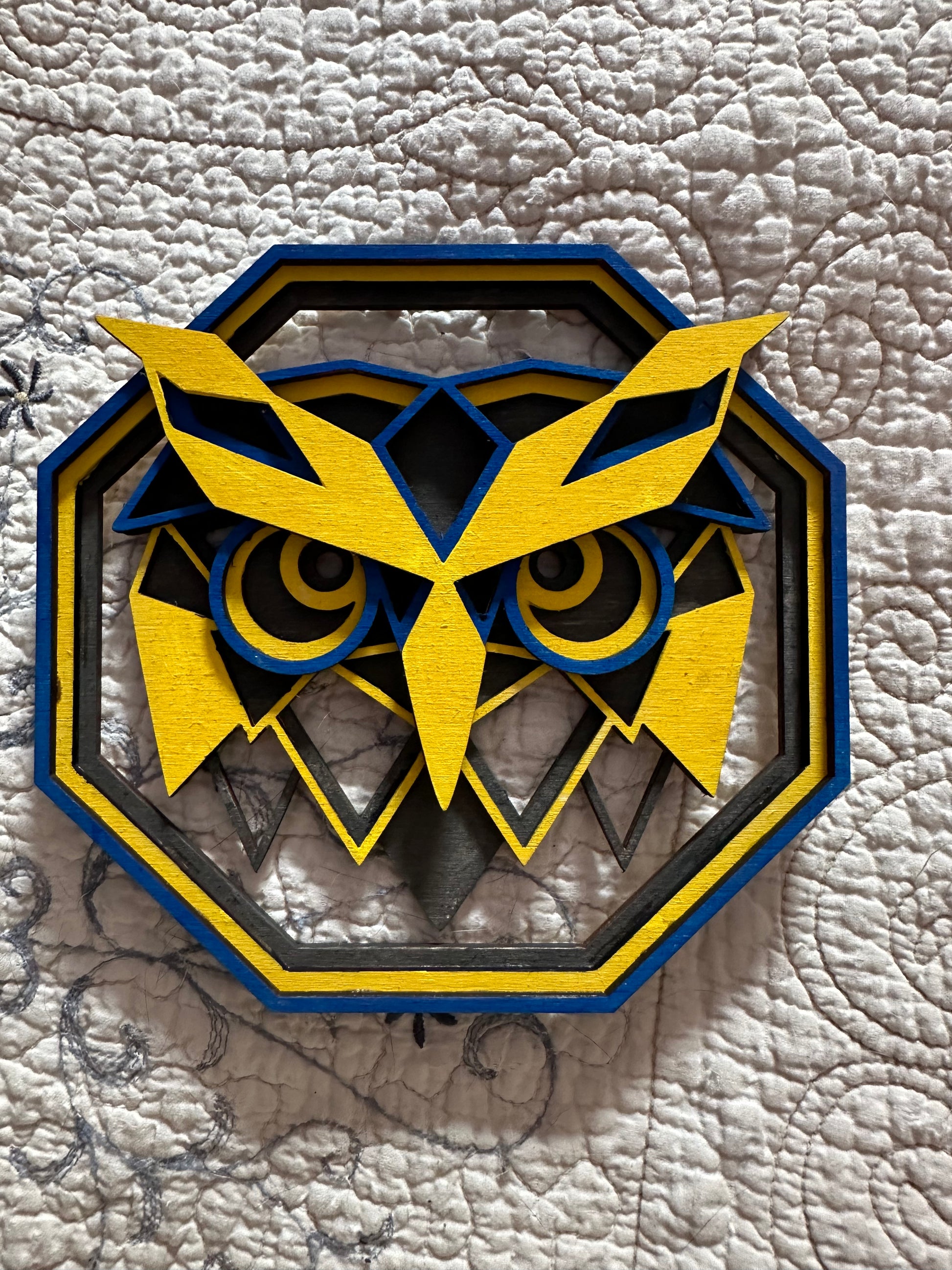 3D multilayered Owl wall hanging, approx. 6"h x 6"w