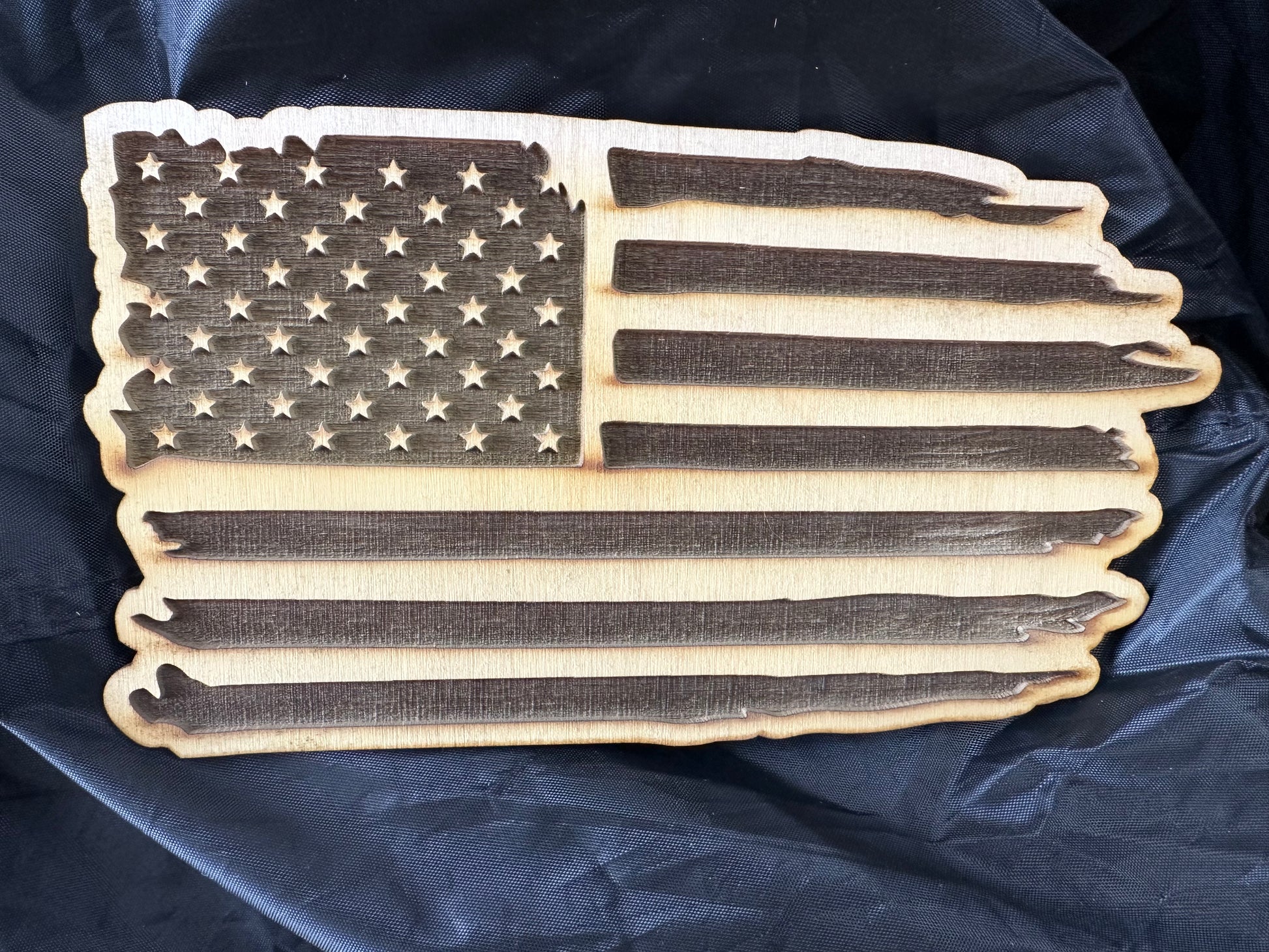 9" x 5" Distressed US Flag, Laser etched & cut from 3mm Baltic Birch wood