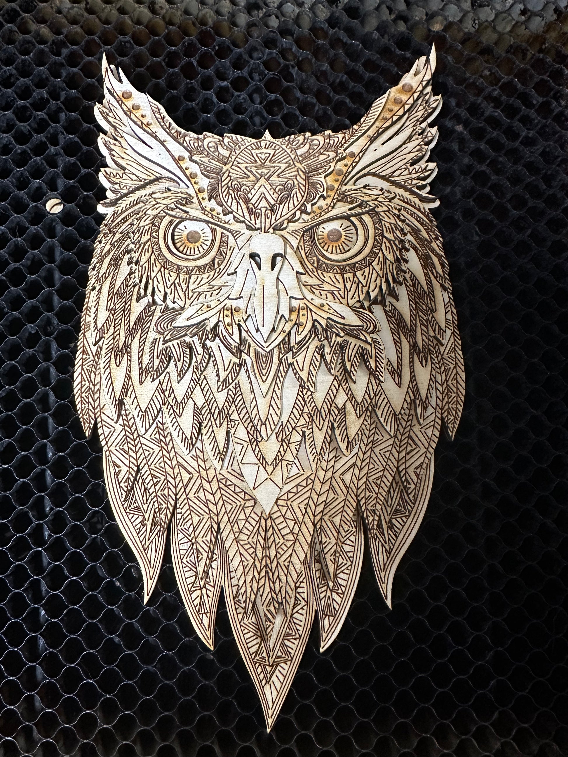 Wall Art - 3D, Spiritual Owl mandala 8 layers of 3mm Baltic Birch