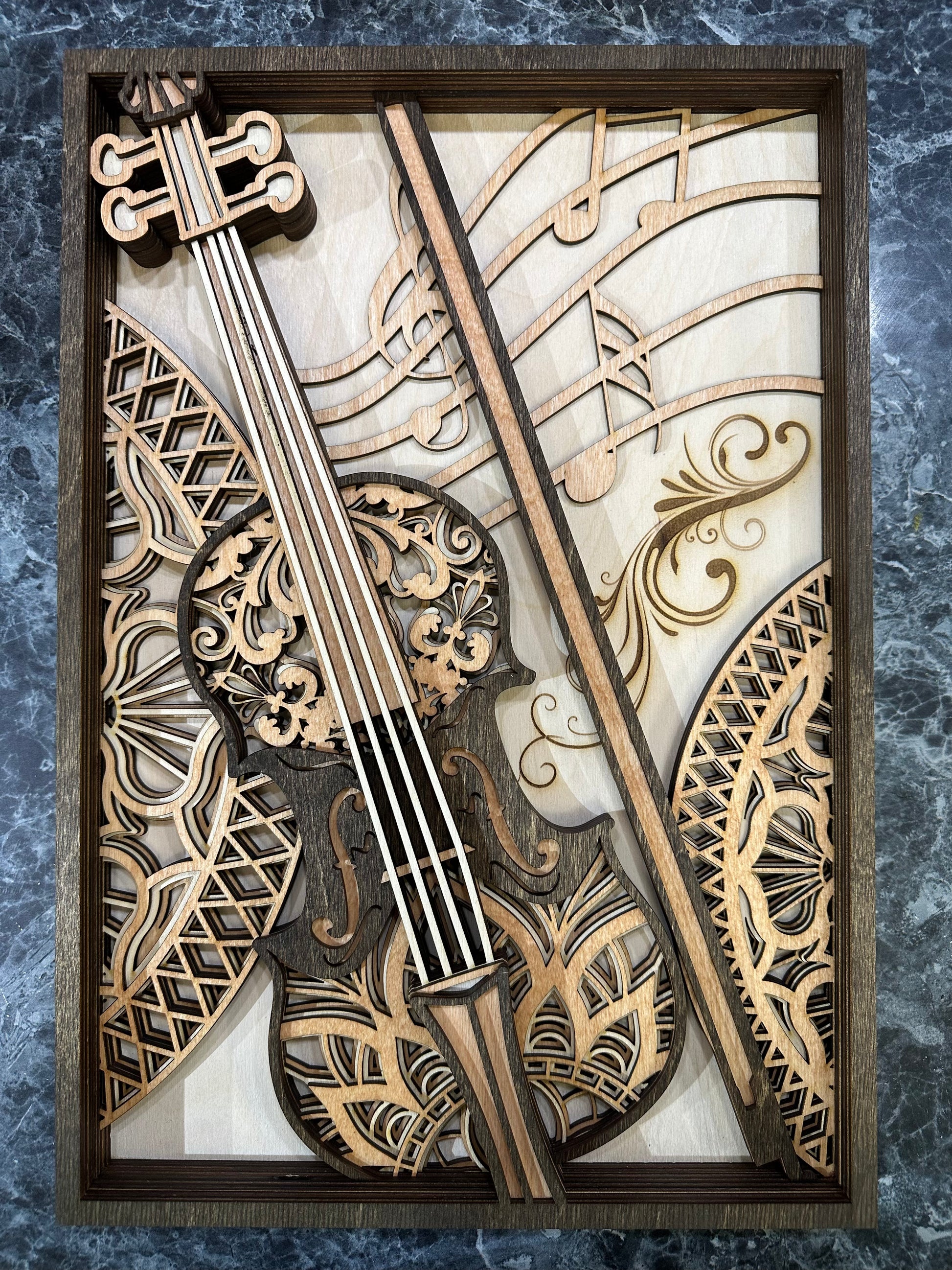 Wall Art - 3D "The Violin", 9 layers of 3mm wood