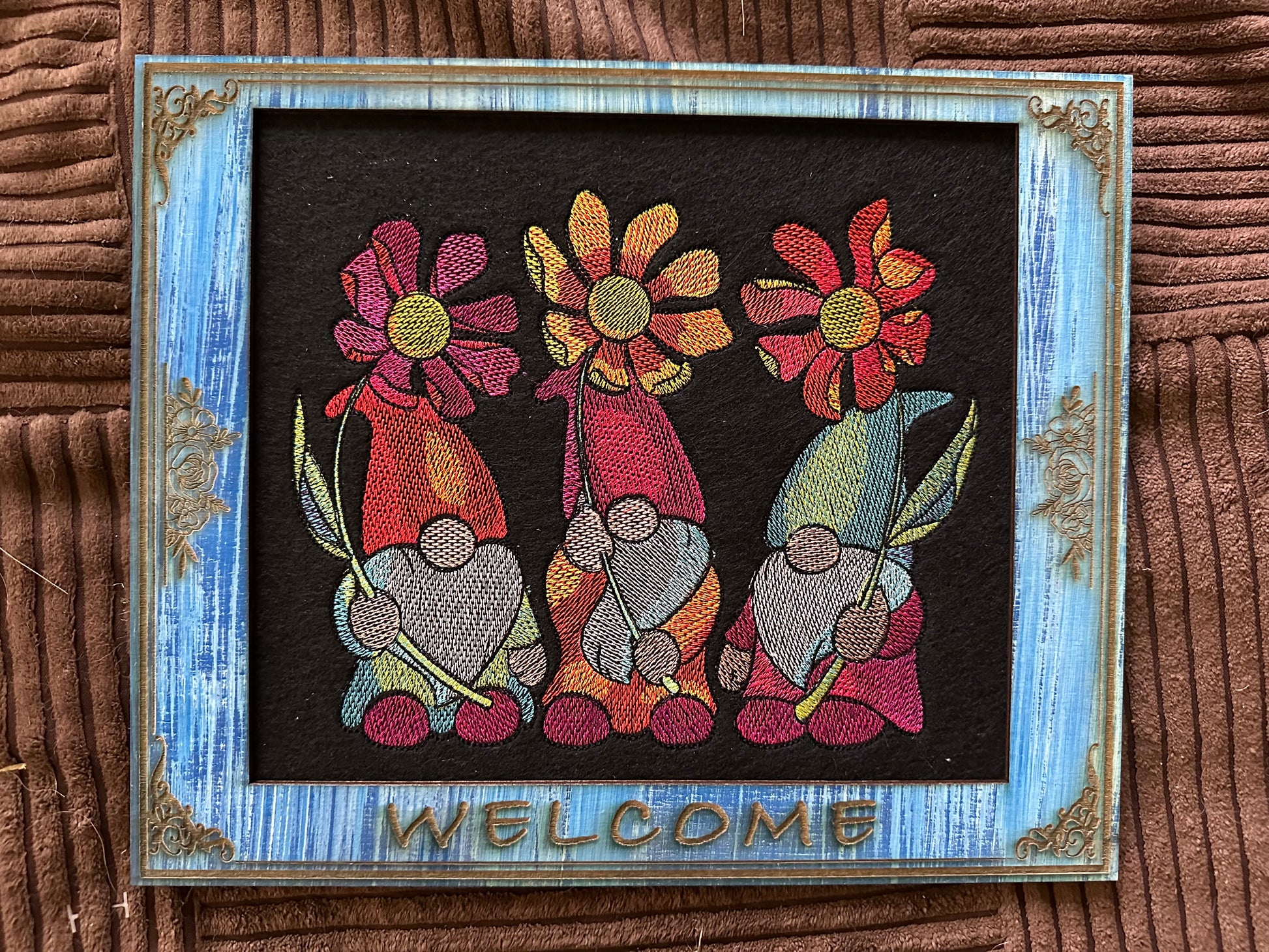 Wall Art - Embroidered Welcome Gnomes (approx. 12" x 10")