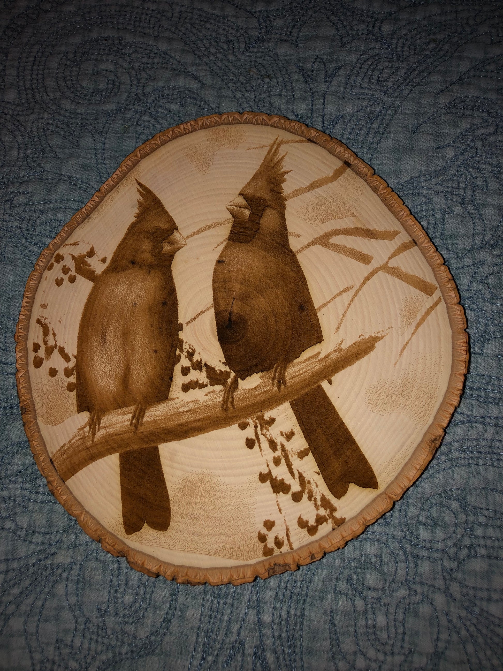 Wall Art - laser etched on live-edge basswood Cardinals